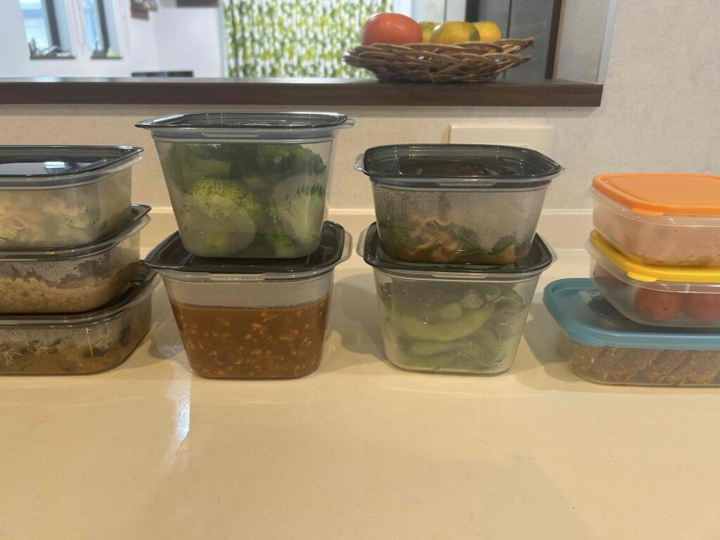 タッパーは100均で買った不揃いタッパー(長年使用)