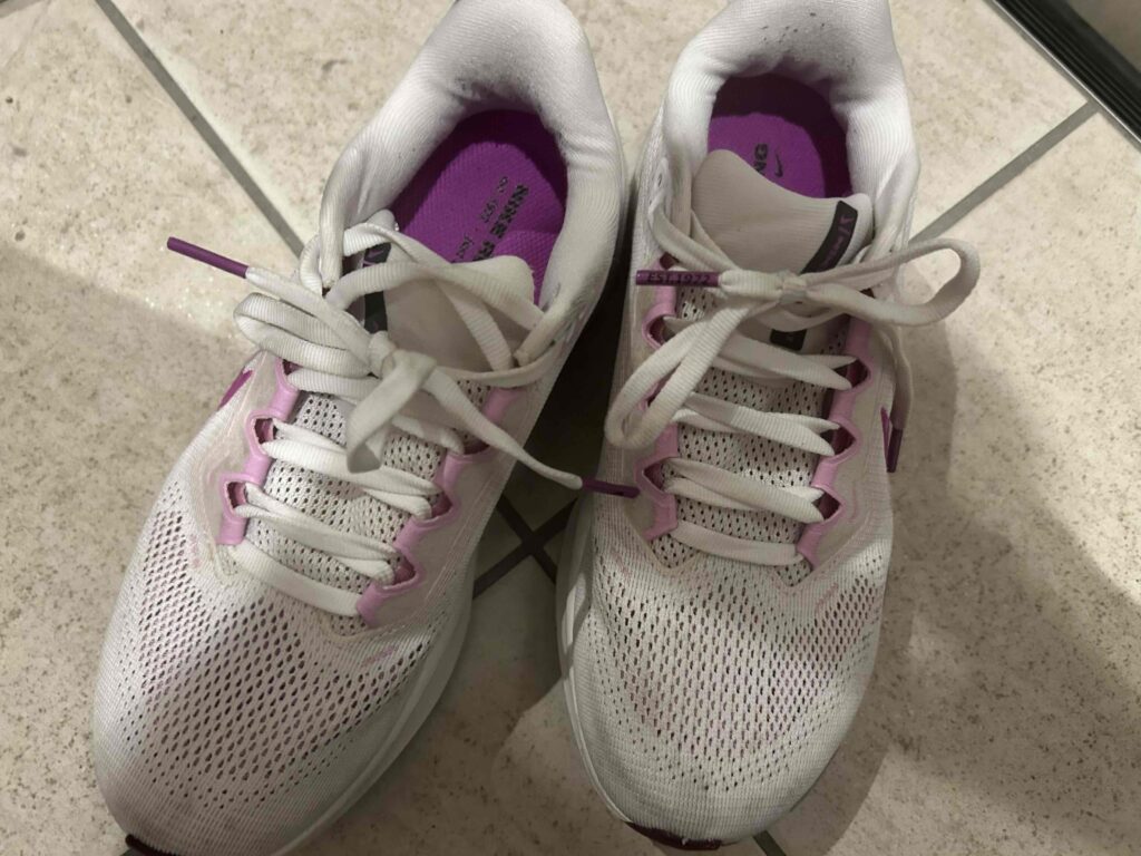 夫さんにいつかのホワイトデーでもらったNIKEのランニングシューズ。走りやすくて、履いて歩くと勝手に走り出すくらい軽くて、足が弾みます。(少々年季が入っております)これに似合うランニングウェアがあれば…ぽちっとしちゃおっかな~(ばかり考えている今日この頃)