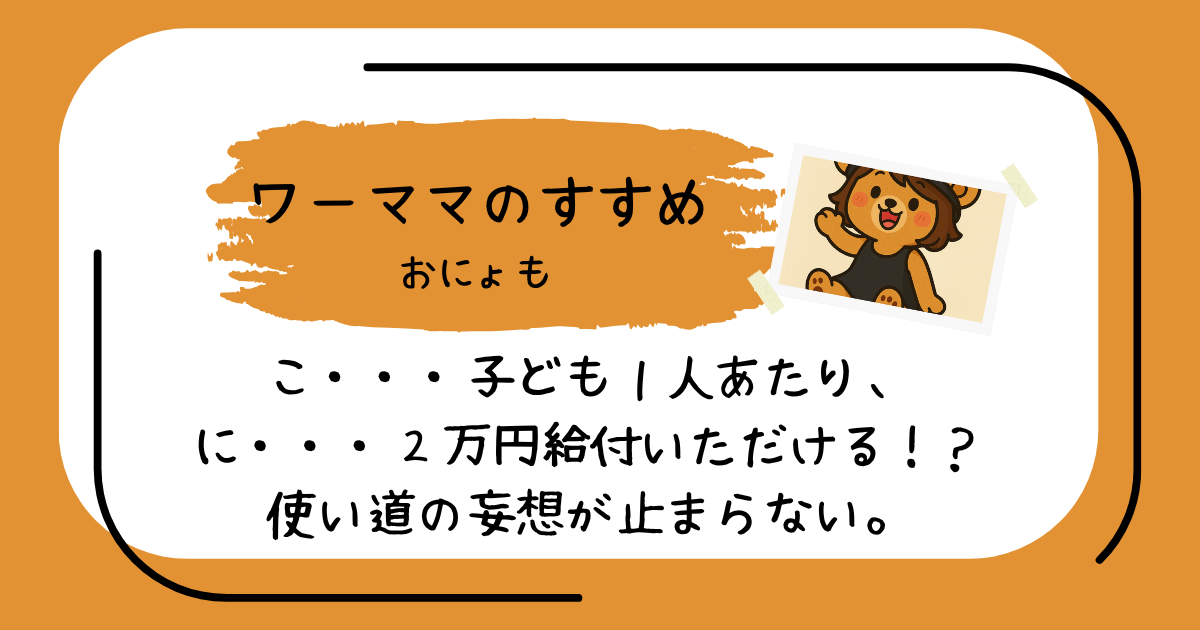 そんなワタシ、先日から報道されている”子ども1人2万円給付の経済政策”を知り、使い道の妄想が止まりません🤣